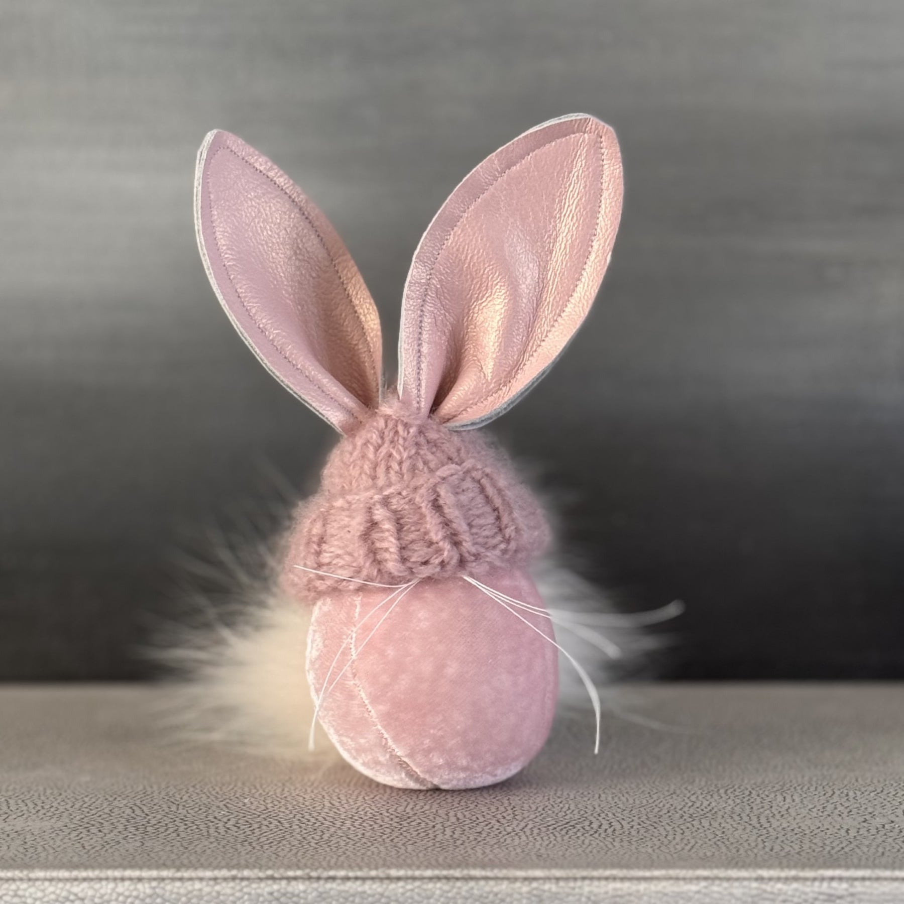 I have white fluffy tail and a hand knit cashmere hat