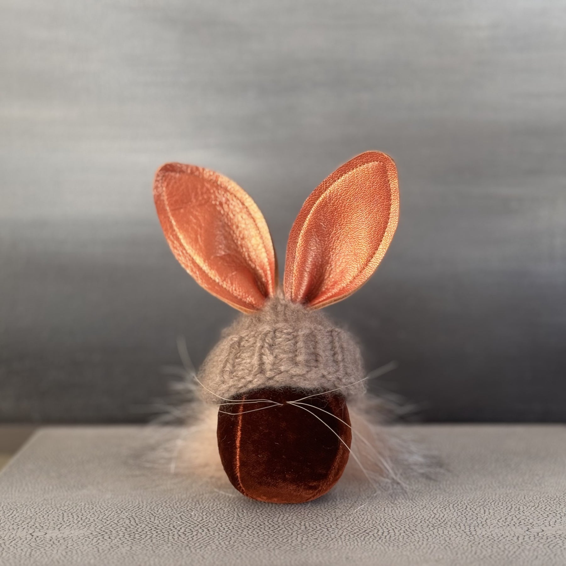 Our baby bunnies stand approximately 5 inches to the tip of their ears and come with a hand knit 100% Cashmere Hat.