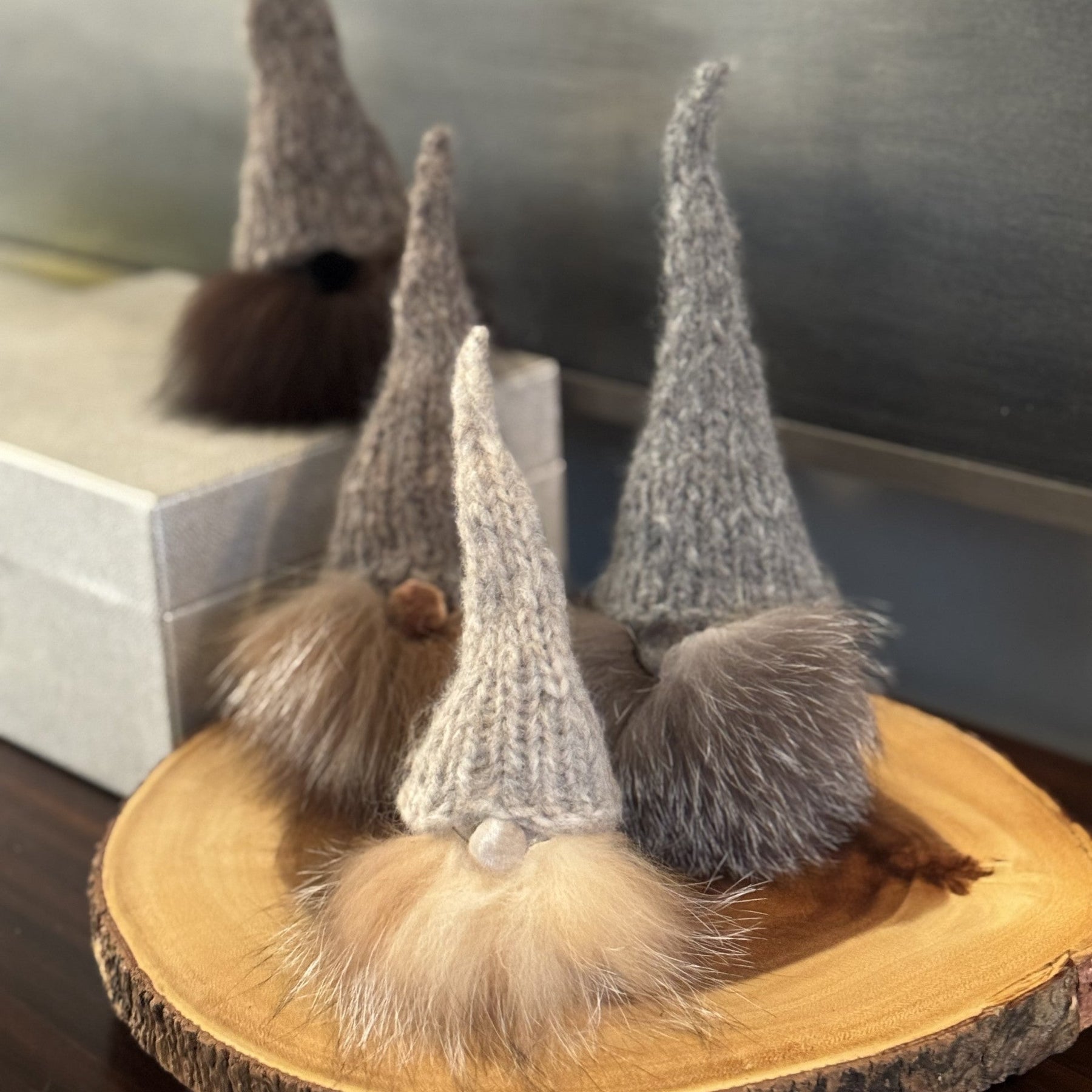 Our most distinguished senior Gnome.  Wise, intelligent and full of charm.  His warm charcoal beard and soft grey wool hat give him a refined scholarly look as if he's spent decades gathering stories, knowledge, and a bit of woodland magic.